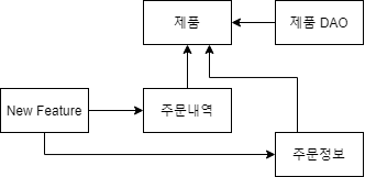 만약 주문내역이나 주문정보가 아닌 다른 곳에 제품의 정보를 출력하는 기능의 개발이 필요한 경우 New Feature 클래스가 해당 매체의 기능을 이용하도록 구성할 수 있으나 이 방식은 OCP를 위반한다.